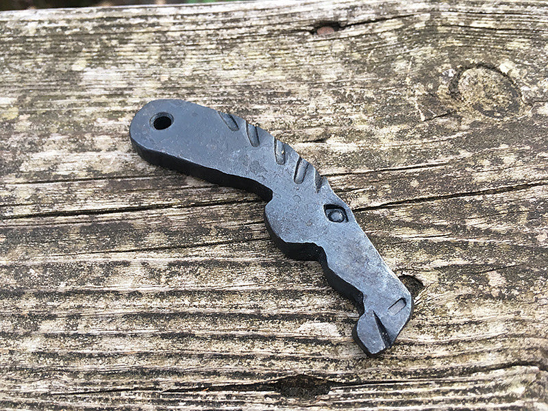 Hand forged key chain with a horse head. Made from a mild carbon steel, so wipe down with a light coat of vegetable oil after cleaning.